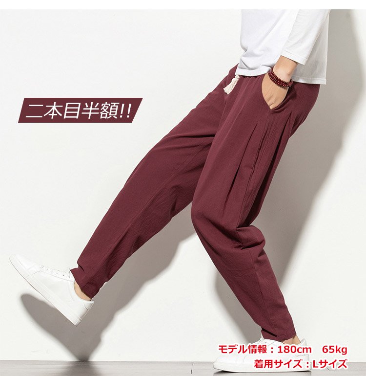 【サルエルパンツ】リネンサルエルパンツ 通気性良い 穿き心地抜群