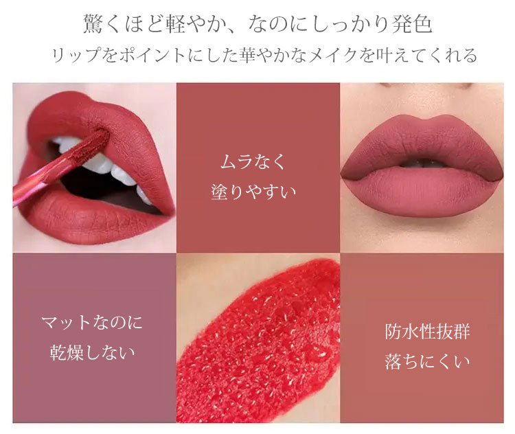 【マットカラーリップティントセット】保湿力も抜群で潤い唇に!大人っぽい「マットタイプ」、防水抜群で落ちにくい